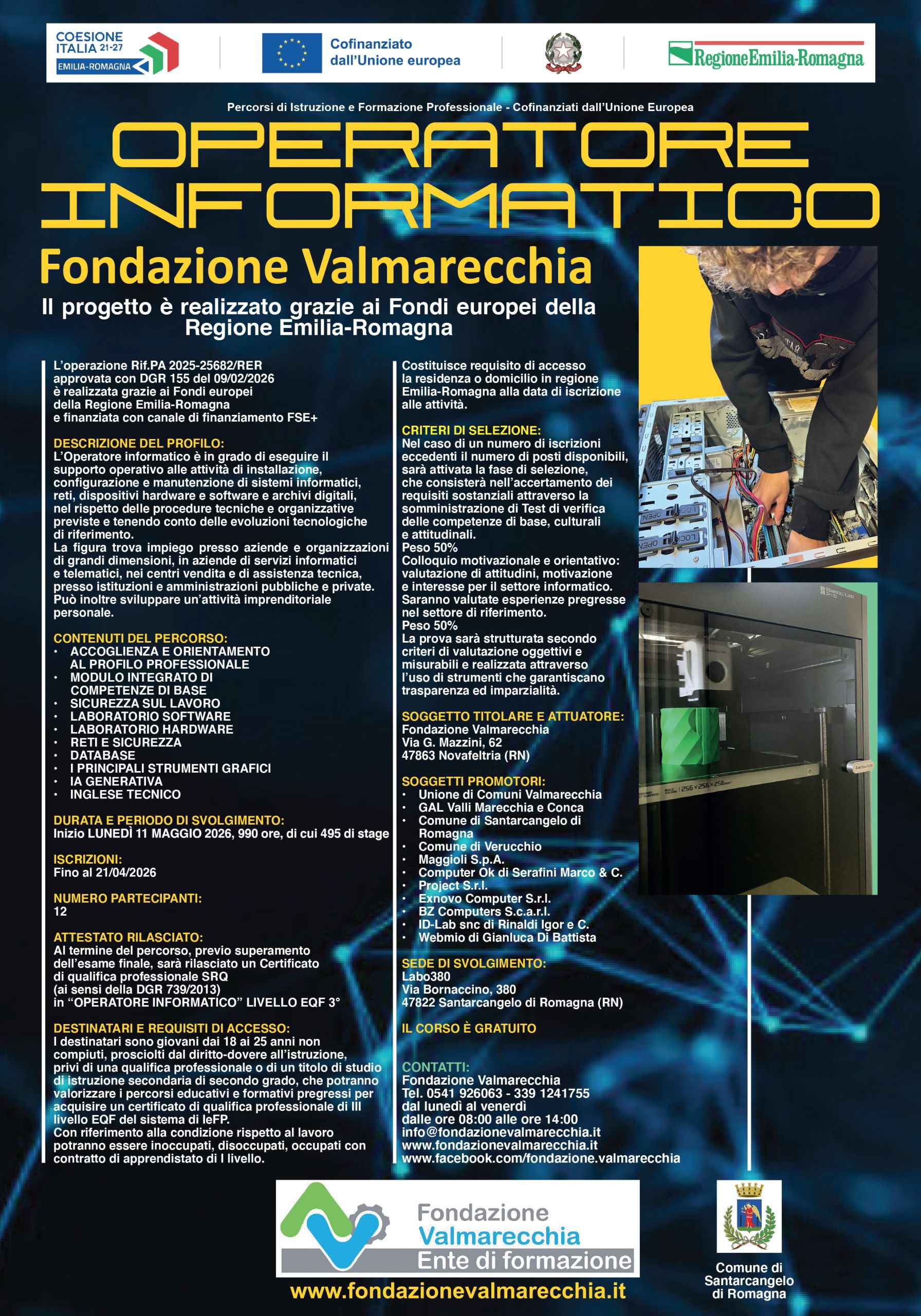 Attestato rilasciato: Al termine del percorso, previo superamento dell’esame finale, sarà rilasciato un Certificato di qualifica professionale SRQ (ai sensi della DGR 739/2013) in “Operatore Informatico” Livello EQF 3°